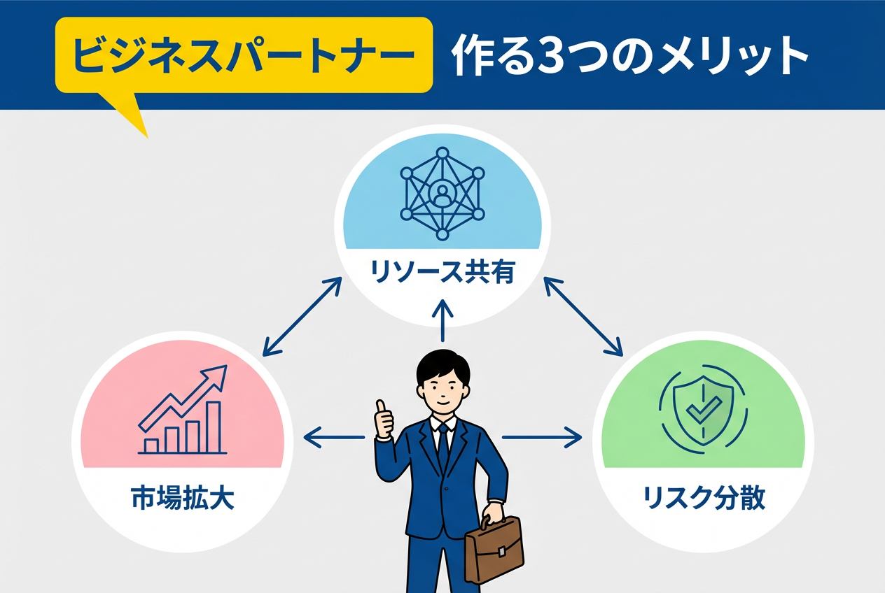 ビジネスパートナーを作るメリットにはどのようなものがあるのか、そのメリットをまとめました。