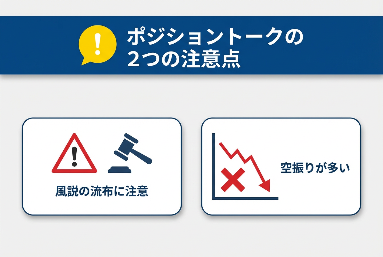 ポジショントークも決して万全とは言えません。ポジショントークを行う際の注意点について解説します。