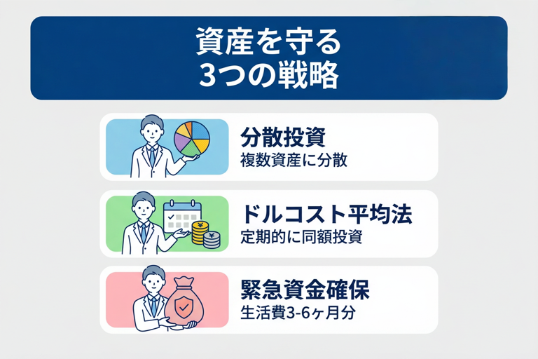 スタグフレーションという難しい環境において資産を守るには、「どの資産に投資するか」だけでなく「どう投資するか」という戦略面も重要です。ここでは、資産防衛の観点から初心者〜中級者の投資家が特に押さえておきたい基本戦略を解説します。