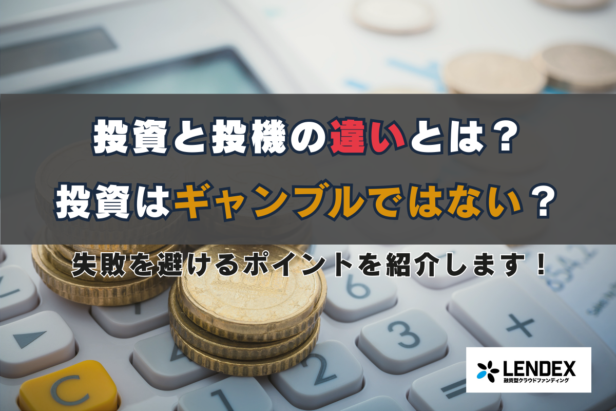 長期的な資産の成長を狙い計画的に運用するのが「投資」で、短期的な価格変動から利益を狙うのが「投機」です。例えば株を長期保有するのは投資、短期売買を繰り返すのは投機と言えます。