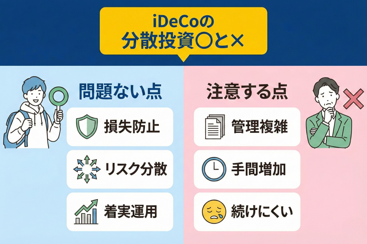 iDeCoでは、複数の商品に分散投資していても、それ自体が大きなマイナス要因になることはありません。