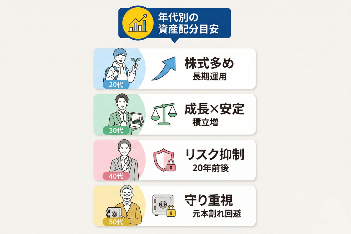 年代別におすすめのiDeCo資産配分(20代・30代・40代・50代)