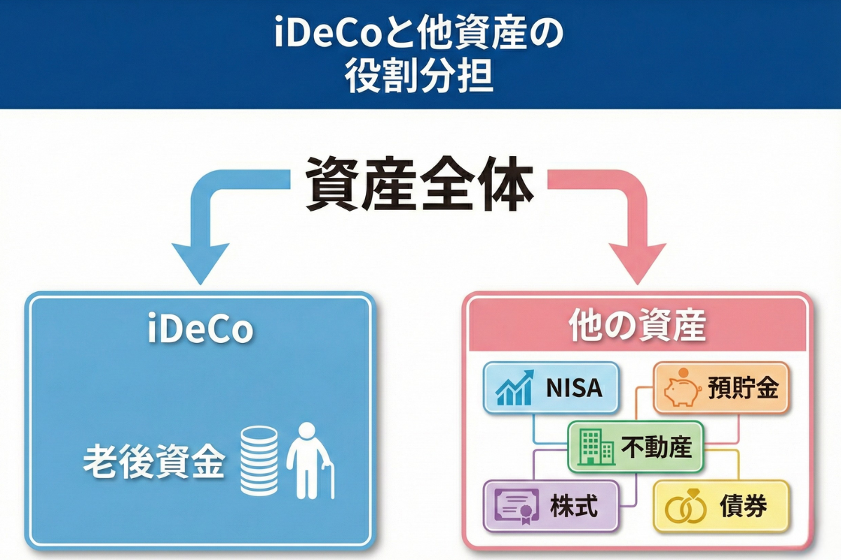 資産運用全体の中で、iDeCoと他の制度(例えばNISA)を役割分担させるのも重要です。