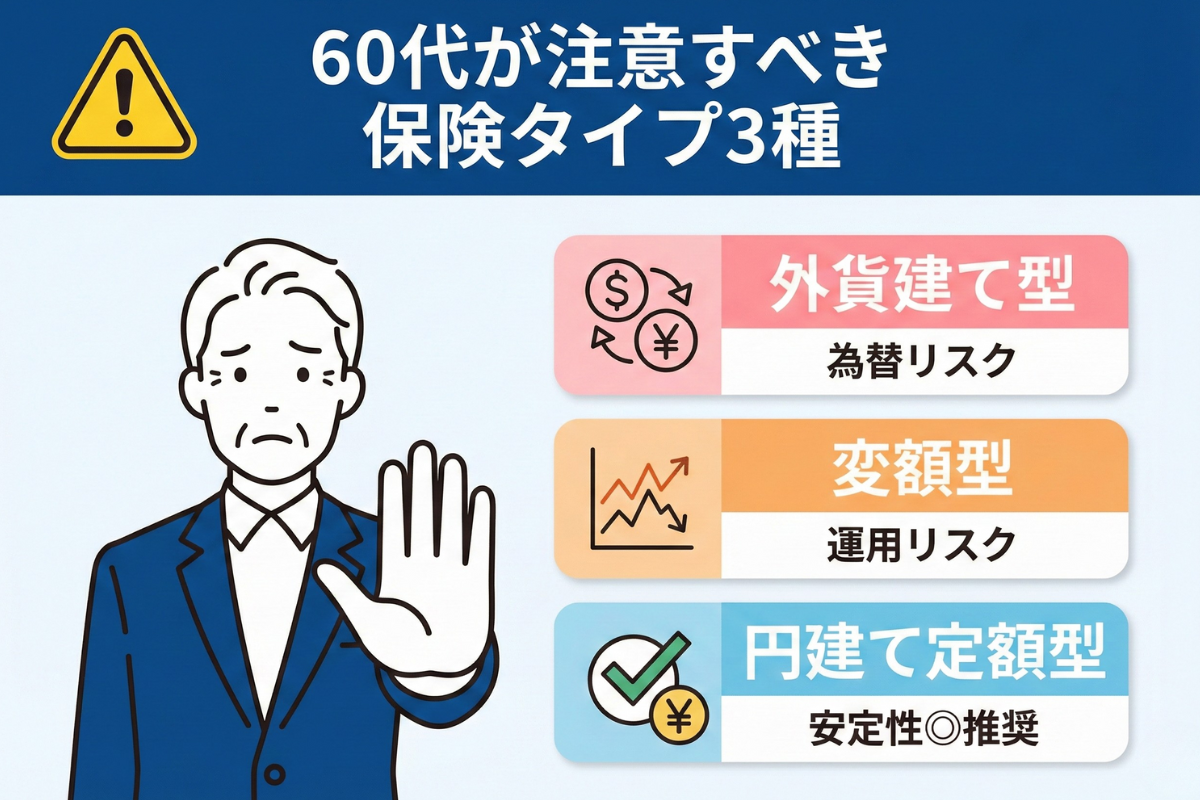総じて60代では、値動きのある変額型より、返戻額が確定している円建て定額型などの安定性重視の保険商品を選ぶのが現実的な選択です。