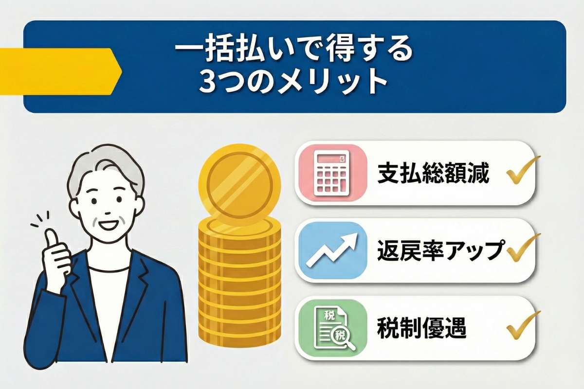 一括払いで得する3つのメリット|支払総額・返戻率・税制優遇