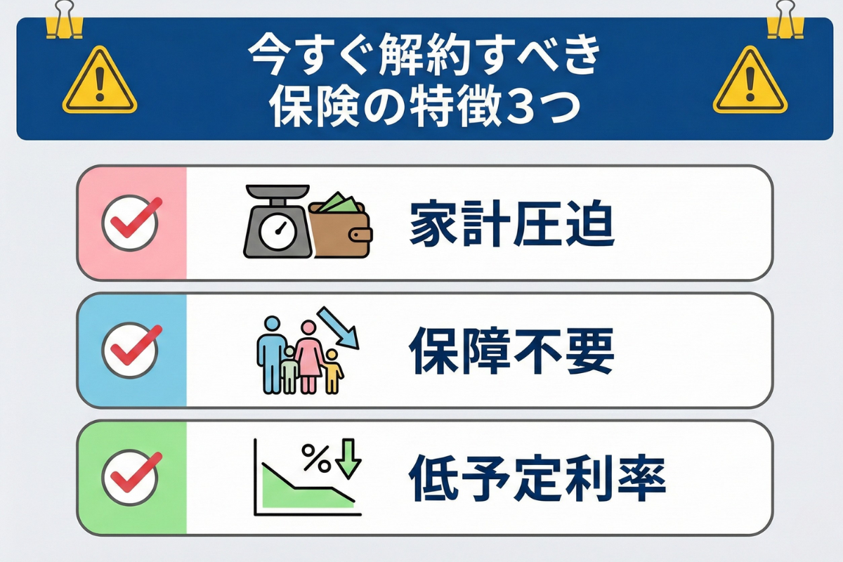 加入当時に比べて必要な保障額が大幅に減った場合も、今すぐ解約を検討すべきです。