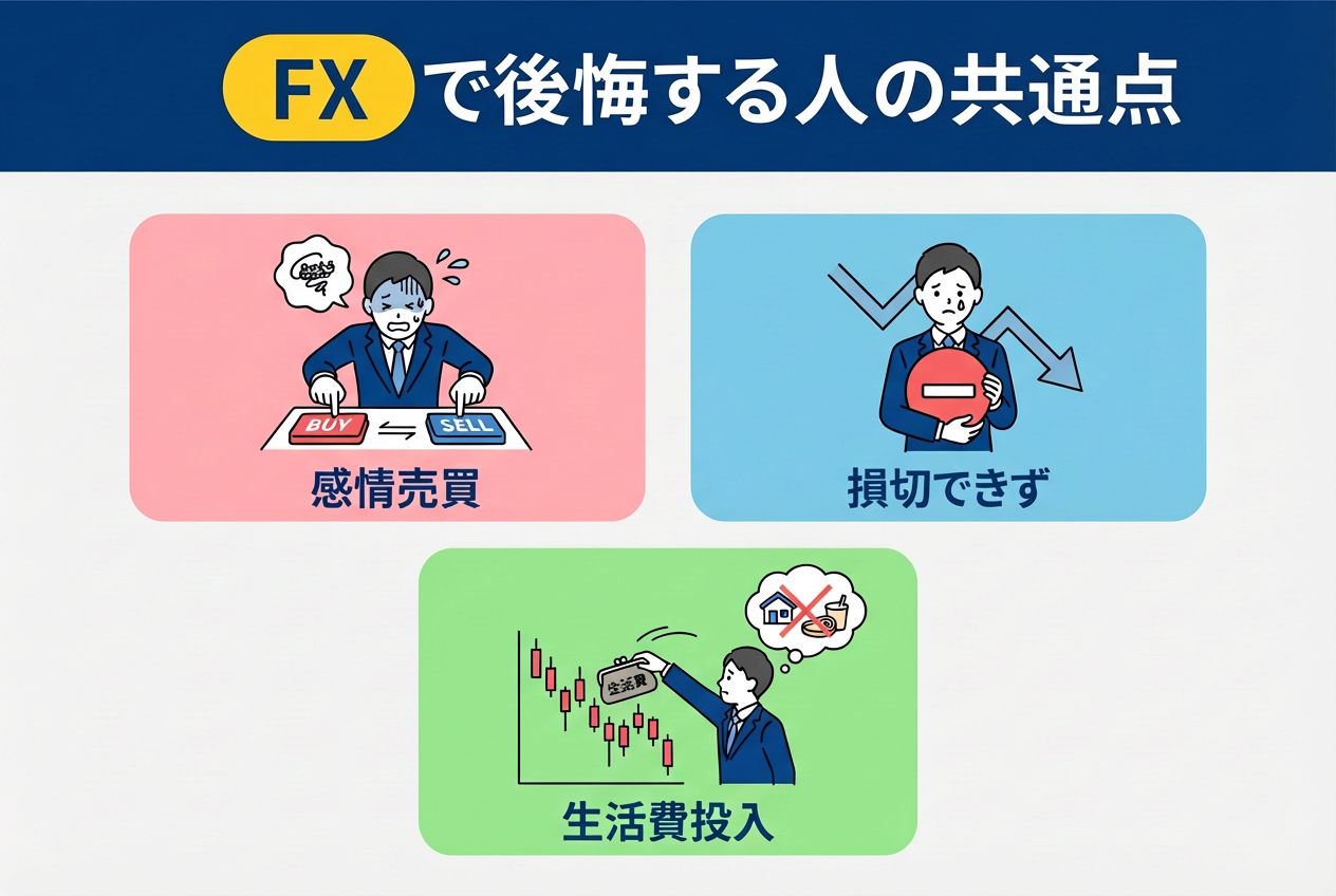 FXで大失敗して「やめておけばよかった」「人生が終わった」と嘆く人には、いくつか共通する行動パターンがあります。