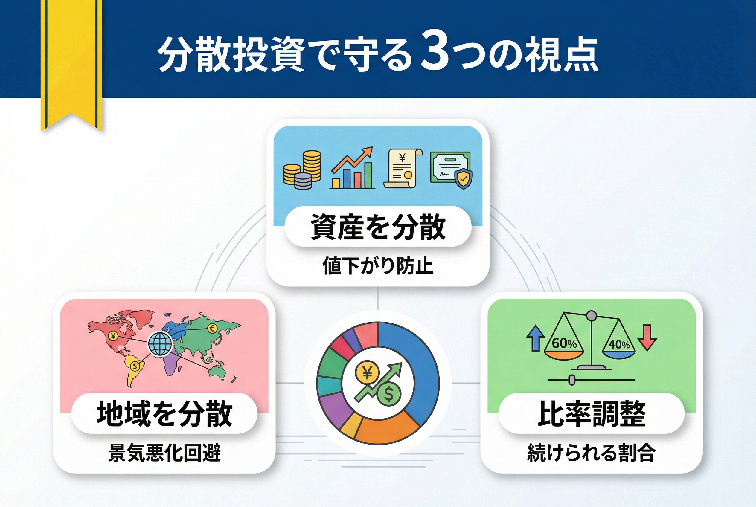 投資先を日本国内だけに偏らせず、海外も含めて地域的に分散することも重要です。