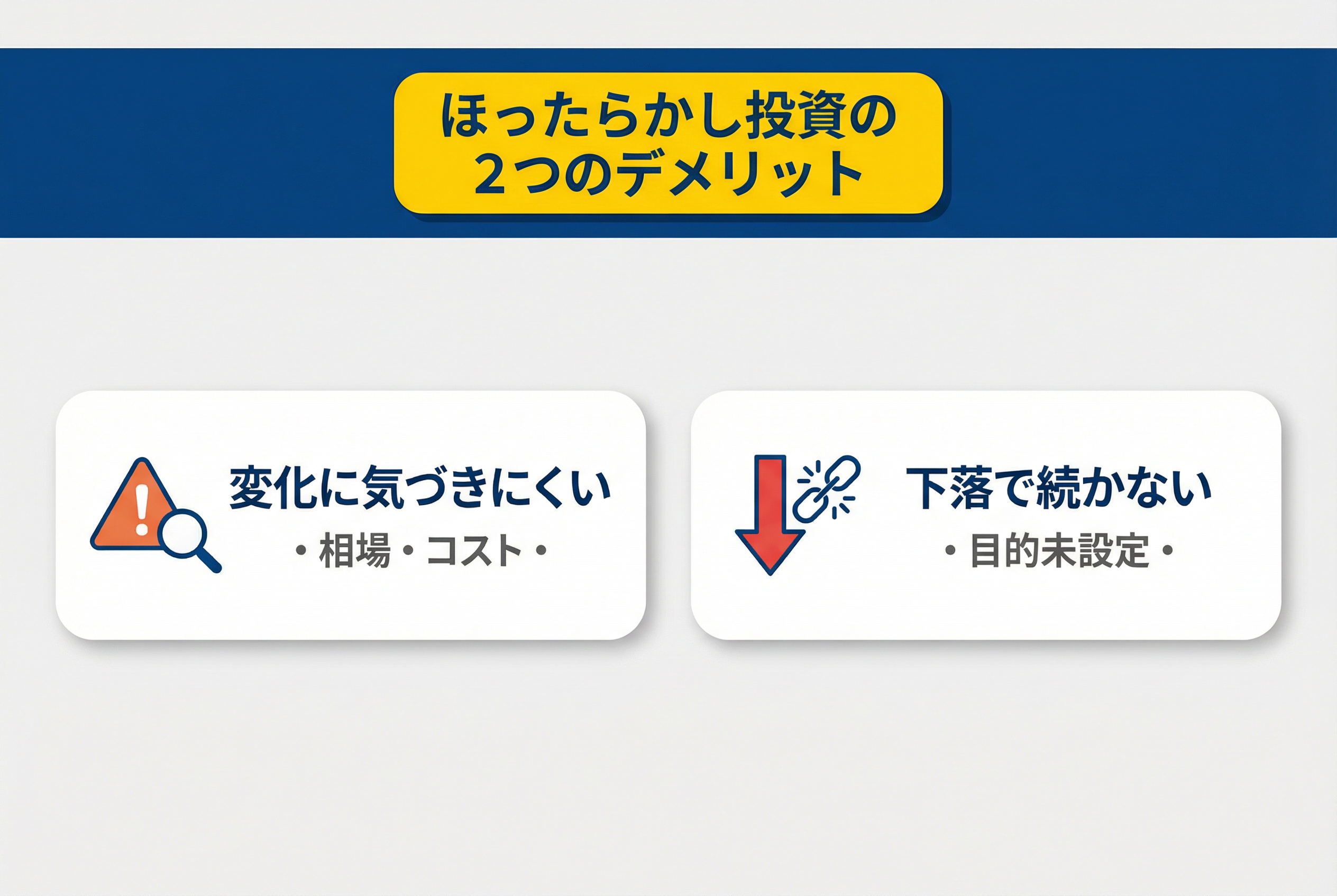 ただし「何もせず放置すれば必ず儲かる」という意味ではありません。市場の状況や投資商品によっては、ほったらかしにすることでかえって損失を招くリスクもあります。