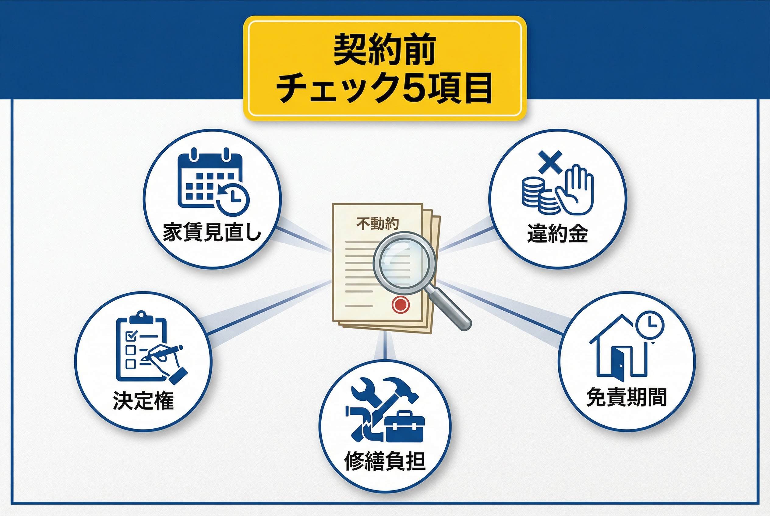 契約前に中途解約の要件、通知期限、違約金の計算方法を数字で確認し、出口戦略とセットで契約可否を判断しましょう。出口を守りたいなら、更新や解約の条件を売却時の視点で読みましょう。